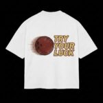 Finished with the UNDERWORLD wordmark on the front and a “TRY YOUR LUCK” graphic on the back, the piece carries a simple message: every shot is a risk, only a few strike.