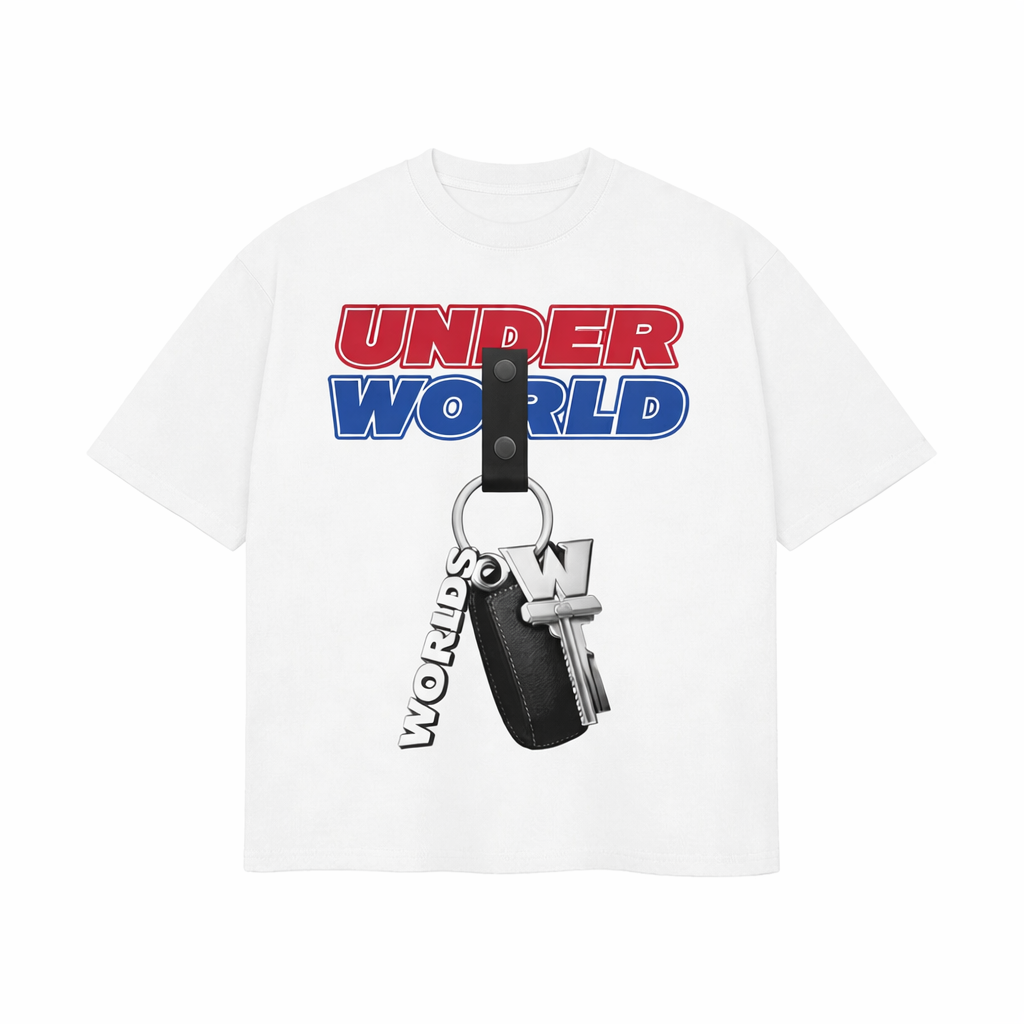 The World Key T-Shirt represents entry into a different level. Featuring the bold UNDERWORLD logo paired with a detailed keychain graphic, it symbolizes control, movement, and ownership of your path.