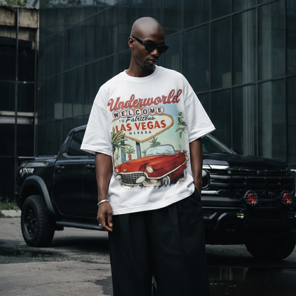 “Underworld Las Vegas” tee. Made from soft, comfortable fabric and featuring a striking design, this shirt is perfect for exploring the city or just chilling with a hint of intrigue.
