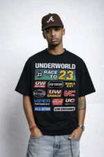 The RACE WORLD Tee is a heavyweight, premium 320 GSM cotton shirt designed for durability, structure, and comfort. It features a clean DTG (Direct-to-Garment) print for sharp detail and long-lasting clarity. Built for everyday wear with a structured fit that holds its shape.