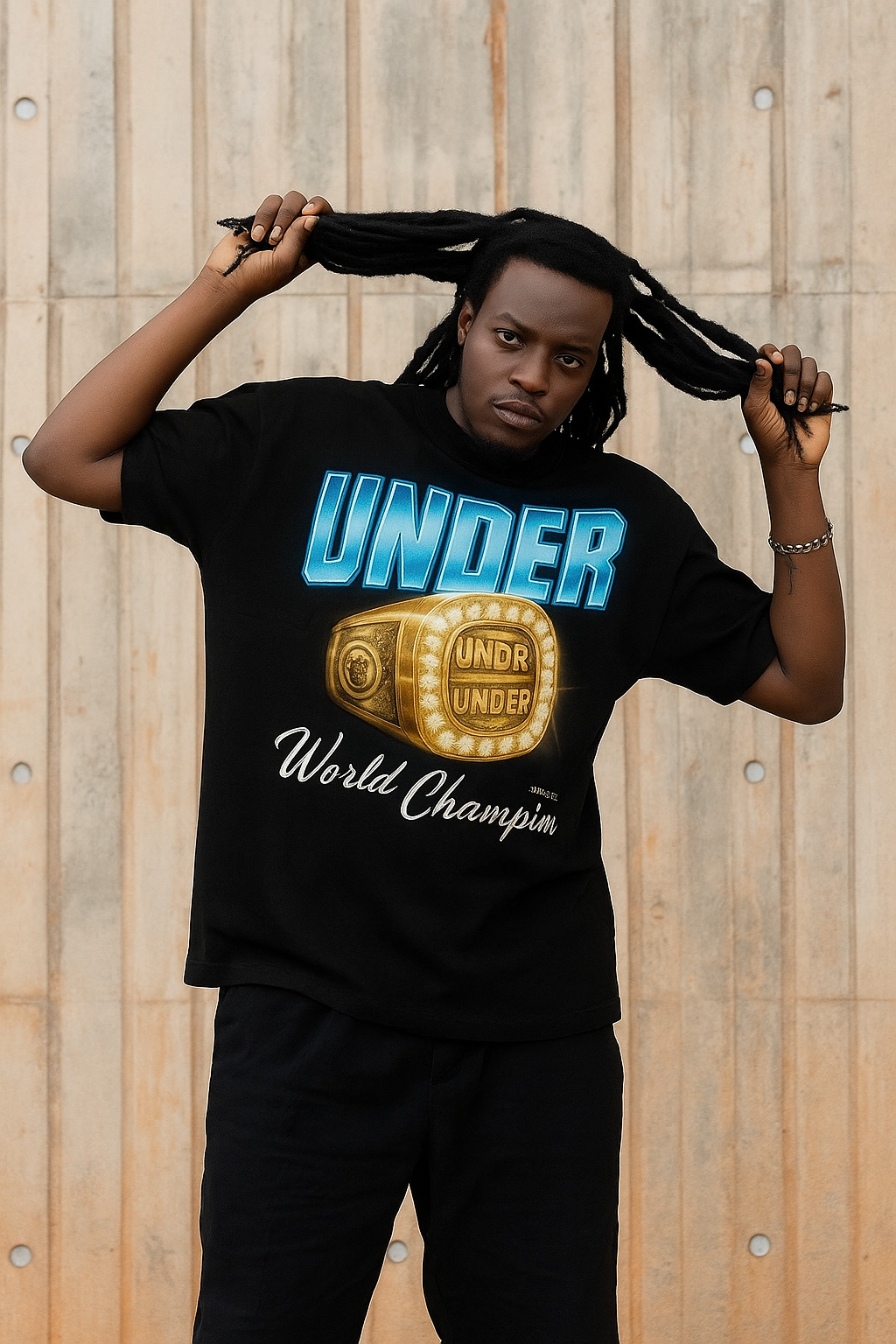 The World Champion Tee blends bold street attitude with the clean, premium identity that defines UNDERWORLD. Designed to stand out without trying too hard, this piece carries the energy of victory — quiet, confident, undeniable.